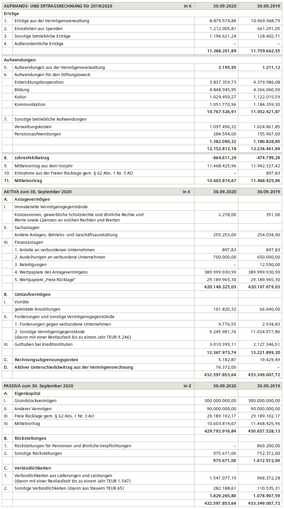 Die Kanzlei Wallenhorst, München, hat die Prüfung des Jahresabschlusses und des Lageberichts der Siemens Stiftung zum 30. September 2023 nach den Grundsätzen des HGB und Artikel 16 BayStG unter Beachtung der vom Institut der Wirtschaftsprüfer (IDW) festgestellten deutschen Grundsätze ordnungsmäßiger Abschlussprüfung vorgenommen und mit dem uneingeschränkten Bestätigungsvermerk versehen.